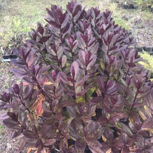 Hebe Black Satin, it is a beautiful, compact variety with gorgeous glossy dark foliage all year round. The contrasting bright pink flowers create a lovely display in summer, attracting bees to your garden. Ideal for pots or borders, this delightful plant thrives in full sun or partial shade in well-drained soil. Black Satin is a crossbreed of Tully Nurseries LTD in Ireland.